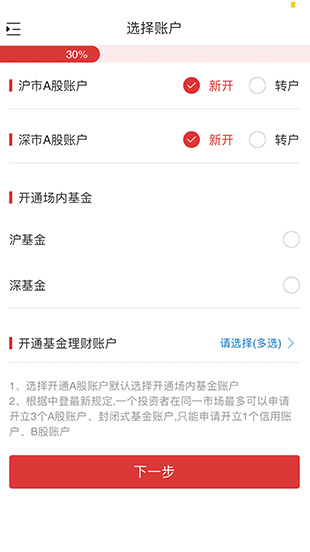 5、勾選對應(yīng)的賬戶選擇開戶賬戶,然后點(diǎn)擊【下一步】。