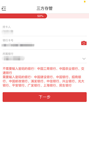 7、選擇需要簽約三方存管的銀行,然后點(diǎn)擊【下一步】。